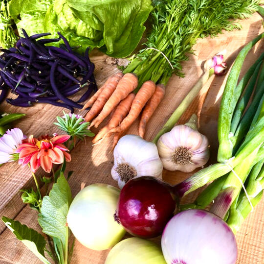 - Juni: Salladslök, mangold, sallad, färsk vitlök, dill, rädisor, kålrabbi, sockerärtor och grönkål