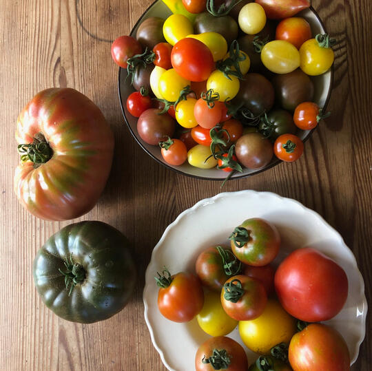 - Oktober: Vintersquash, morötter, vitkål, daikon (jätterättika), tomater, grönkål, purjolök, gul lök och persilja